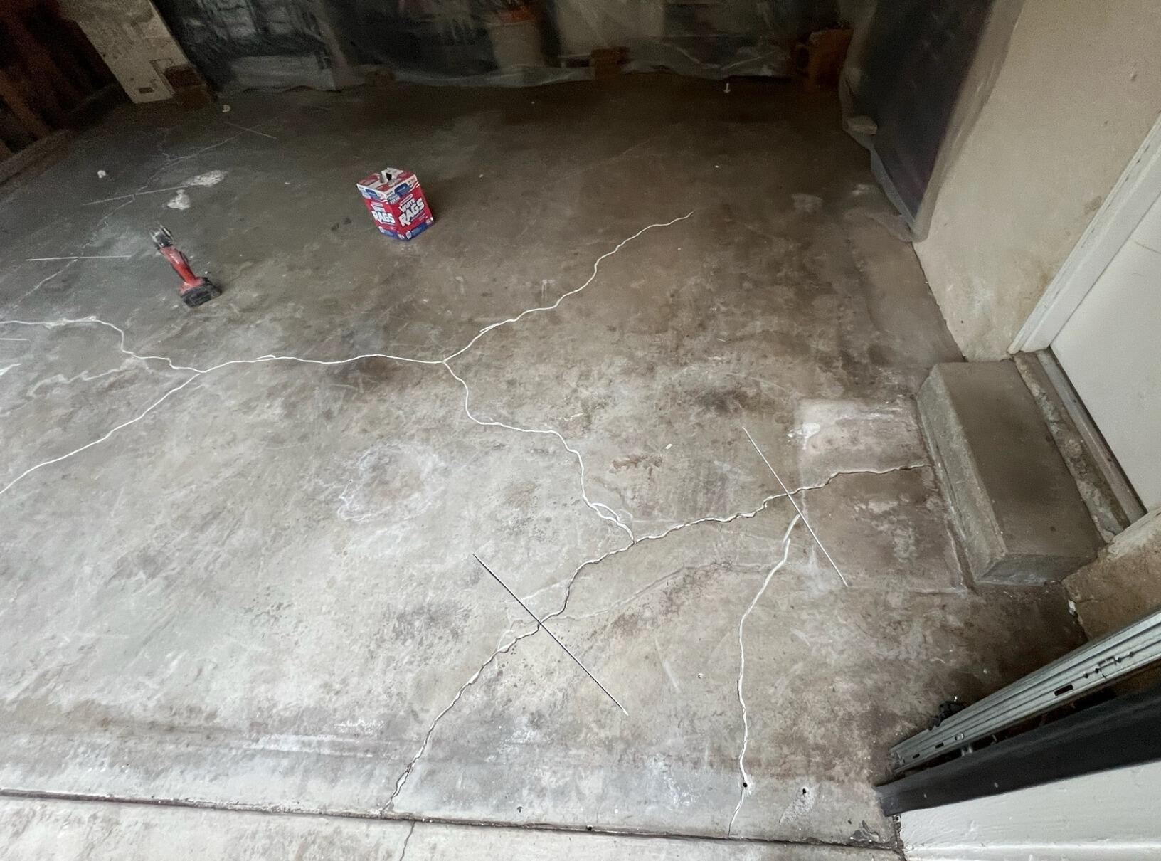 This Woodland Hills, California garage slab had multiple intersecting cracks caused by long-term stress, concrete shrinkage, and soil movement beneath the slab. Cracks in garage floors are common but can worsen over time if the concrete is not properly stabilized.