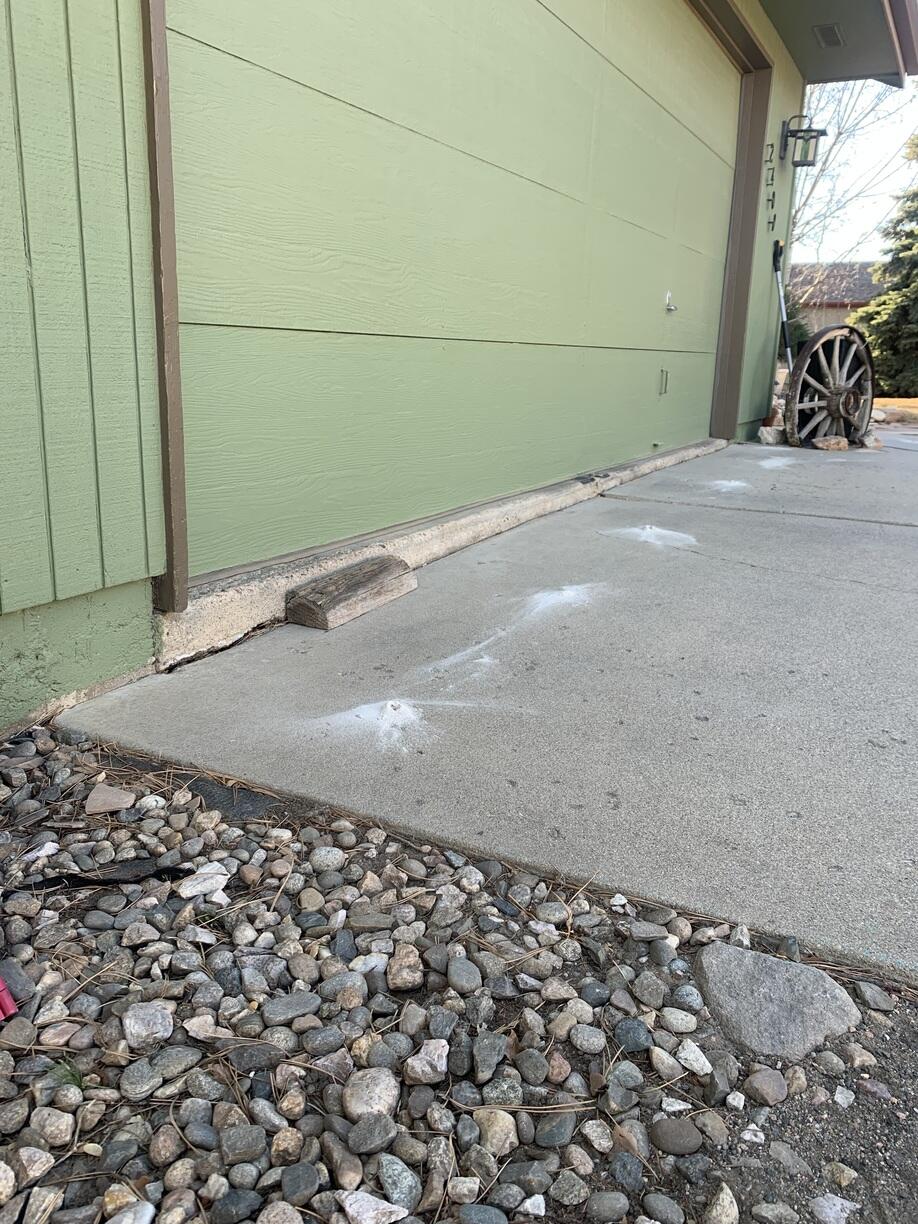 This driveway in Loveland, CO needed a lift. The driveway dropped significantly requiring the homeowner to place a block in front of the garage slab in order to pull into the garage. Our expert concrete crew leveled the concrete back to its original position using PolyLevel Foam injections and sealed the joints and caulked the cracks with NexusPro Joint Sealant to prevent water intrusion. Now, the homeowner has a smooth entry in and out of the garage.