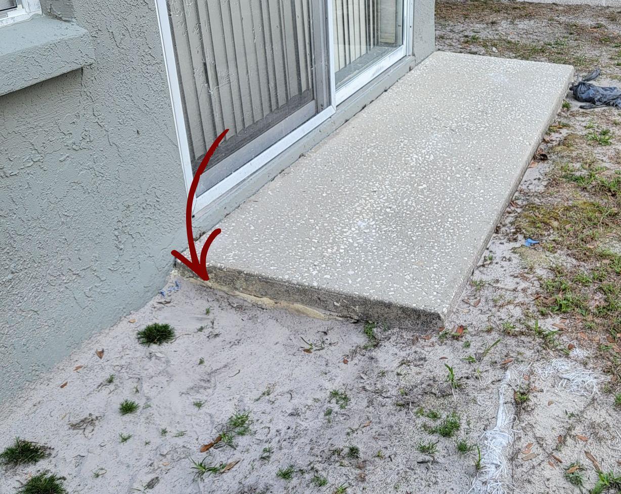 Jeff was preparing to sell his home in Tampa, FL, and needed to address the concrete front porch that had sunk into the ground. The steps of the porch had gradually settled over time, as made evident in the ‘before’ photo. After reaching out to us for assistance, we applied our PolyLevel solution, effectively lifting and stabilizing the steps of the front porch. Notice in the ‘after’ photo how the gap between the steps and the adjacent wall has now been closed, ensuring the steps have been restored to their proper level. With the front porch now fully repaired, Jeff can now confidently place his home on the market at its highest value.