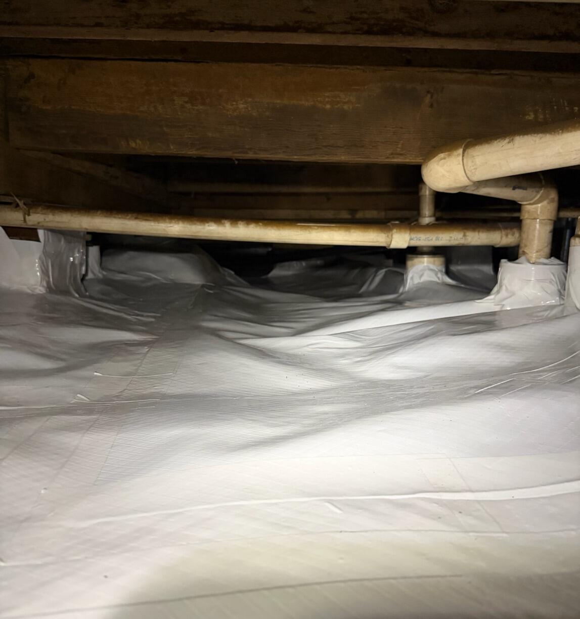 Before, the crawl space was exposed to humidity, soil moisture, and potential mold growth. Our team installed a clean, durable vapor barrier along the floors, walls, and piers to completely seal out moisture and create controlled environment. The result is a cleaner, drier, and healthier crawl space that protects the home's structure, improves energy efficiency, and gives the homeowner peace of mind year-round.
