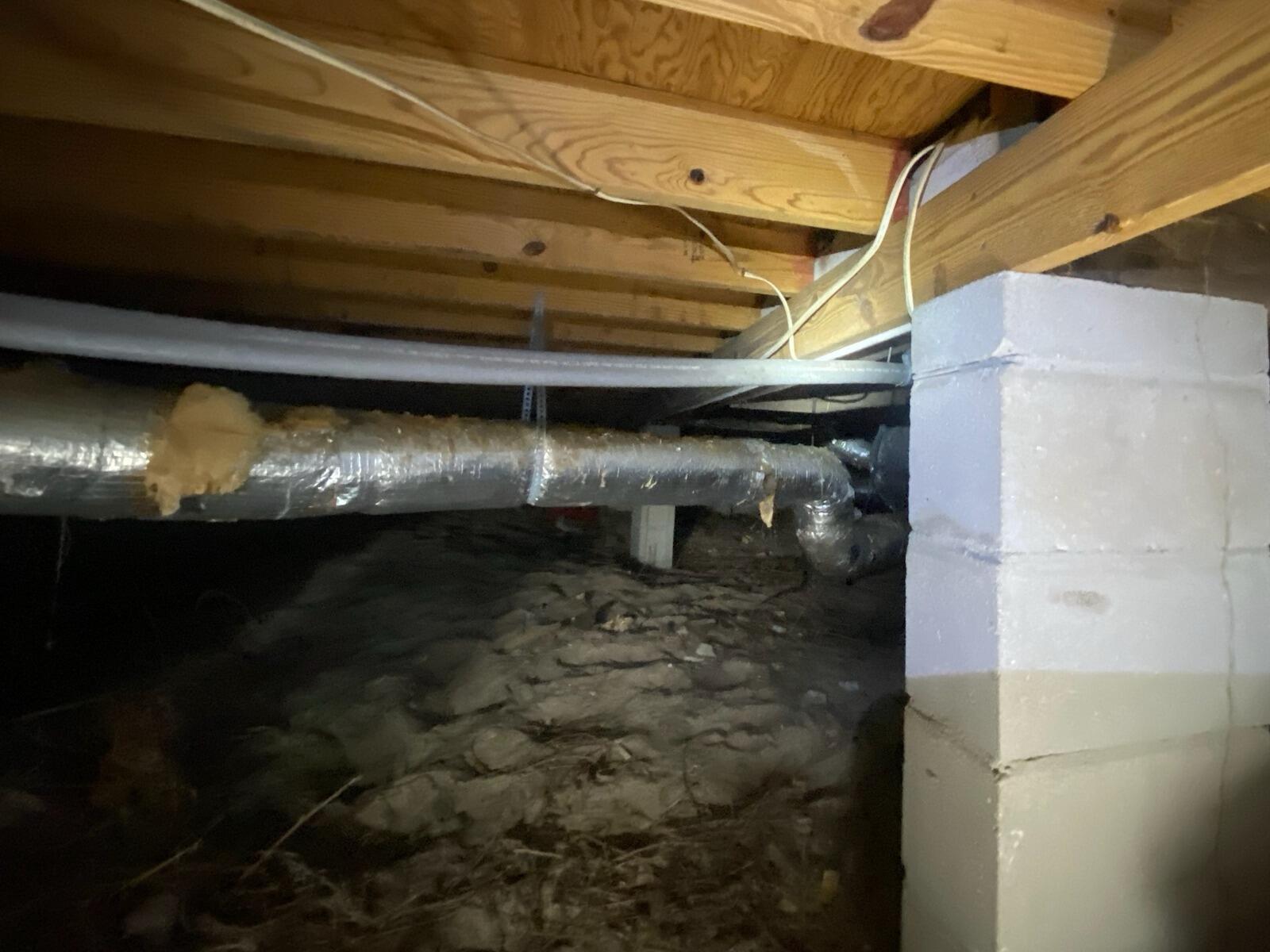 The crawl space was damp due to open vents and a dirt floor. Open vents allowed outside air, which often carries moisture, to enter the crawl space. Additionally, the dirt floor contributed to the dampness by allowing moisture from the ground to evaporate and rise into the crawl space, creating a humid environment conducive to mold growth and other moisture-related issues. Our solution was to completely seal the open vents and install our CleanSpace Vapor Barrier System with a SaniDry Sedona Dehumidifier.