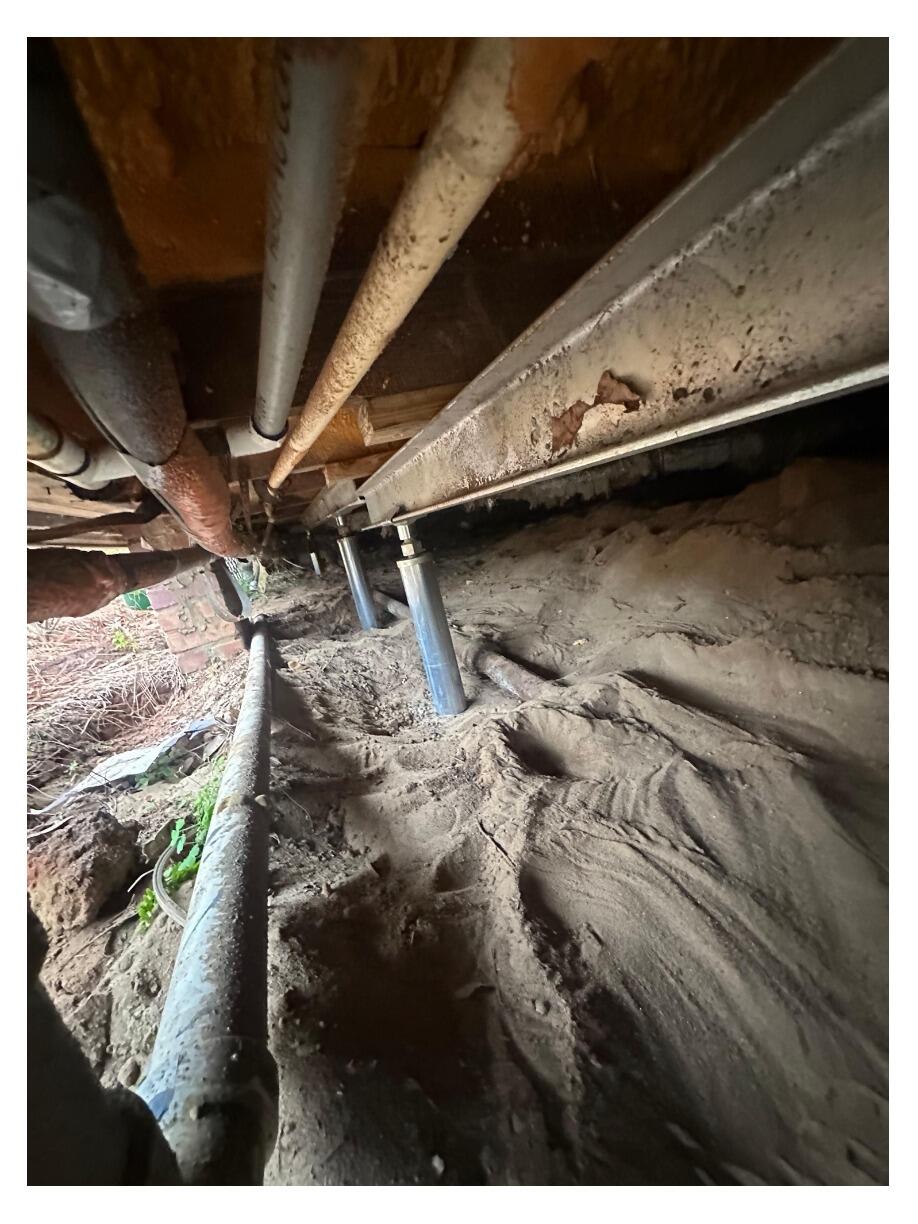 These photos show the new SmartJacks secured on engineered footings, lifting and stabilizing the beams above. Unlike traditional wood posts that rot or shift, SmartJacks provide a strong, corrosion-resistant, and adjustable solution that can be tightened over time to maintain proper floor leveling.
