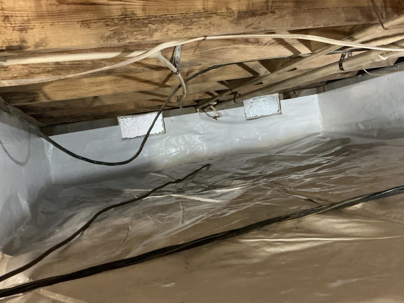 The damp and dirty crawl space was transformed into a bright, clean, and dry space using CleanSpace Crawl Space Encapsulation System.