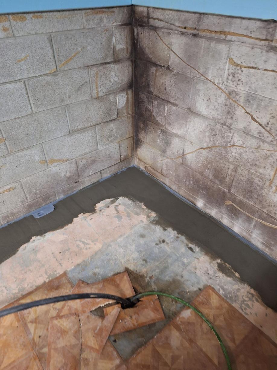 A TripleSafe sump pump was installed to help evacuate the water from the basement. This prevent water from standing in the space and keep the basement dry. A TripleSafe pump has two pumps that work to evacuate the water and a battery back up incase of power failure.
