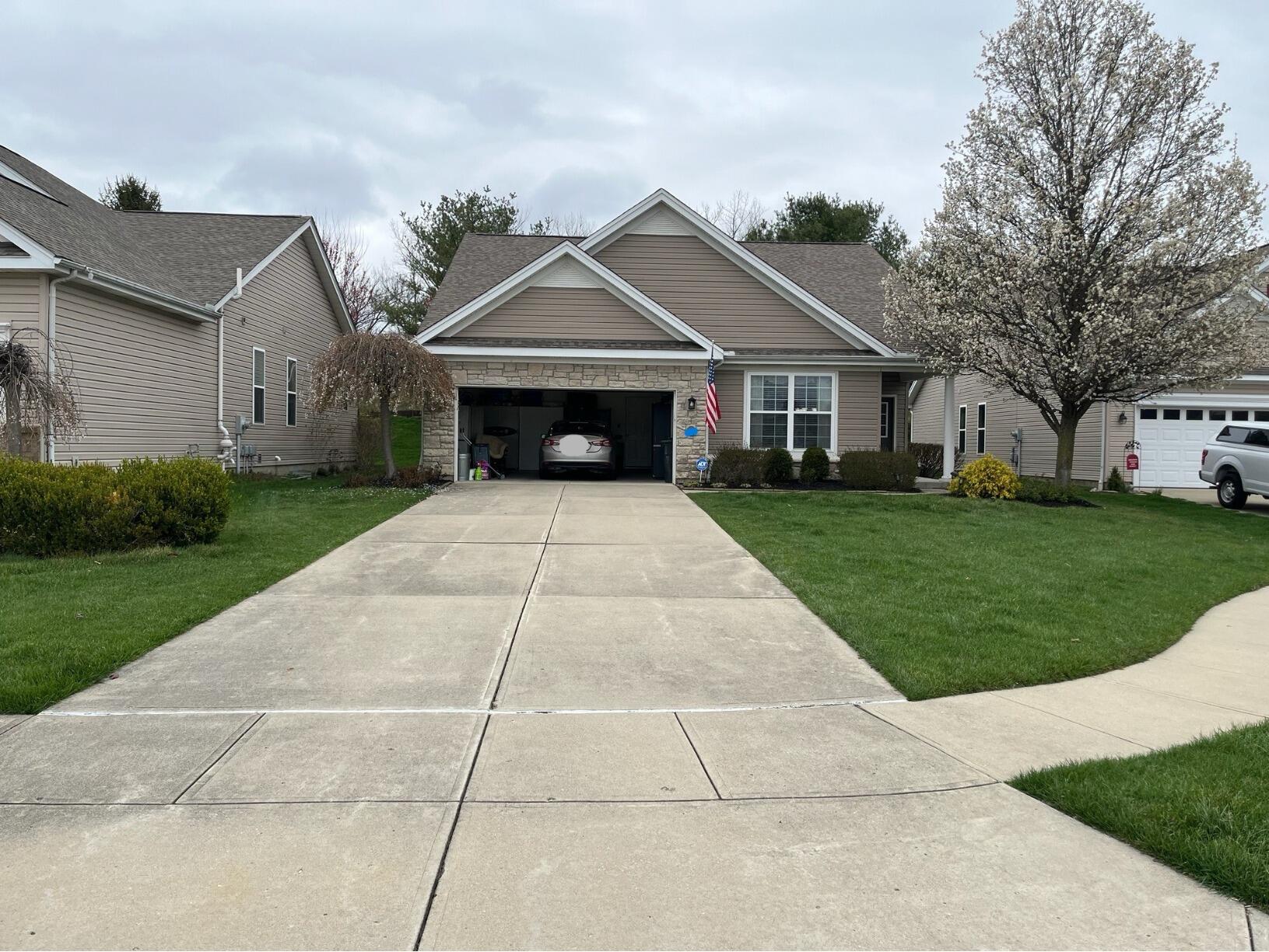 We first leveled out some of the slightly sunken slabs in this driveway with our PolyLevel foam jacking method in Dry Ridge, KY. After we stabilized the slabs, we then sealed all the joints with our NexusPro joint sealant. Our NexusPro sealant is UV resistant and will keep water and debris out of the control joints, all while still allowing natural expansion and contraction in the concrete. We then topped off the project by spraying our SealantPro chemical all across the surface of the driveway, "SealantPro dramatically extends concrete's lifespan by defending it from damage caused by water and chemical absorption, which can result in pitting, flaking and staining. Unlike other sealants that degrade over time, SealantPro penetrates the slab and chemically bonds with the concrete itself, while a temporary colorant indicates which surfaces have been treated. In just one professional application, SealantPro forms a clear, strong and permanent barrier that prevents water and other substances from penetrating the concrete." The result of this project is a dramatic increase in the expected lifespan of the homes outside concrete and a major boost in curb appeal.