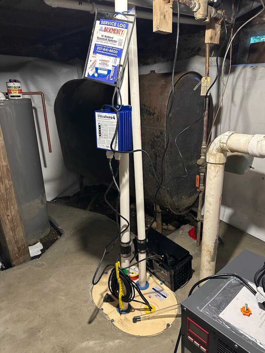 Owning a basement without much for waterproofing, this Saint Albans, ME homeowner was tired of finding inches of standing water in their basement. After a quick Google search and a phone call to our office at TC Hafford Basement Systems, this homeowner was set up with a free estimate where they were given details about their options. Once we got the green light to begin work from the homeowner, our crew began by excavating the perimeter of the basement floor. This enabled the installation of WaterGuard piping buried just below the surface of the floor. Next, a SuperSump pump was installed as well as a PVC discharge line with built-in protections on the exterior of the home in the form of an IceGuard pipe segment. Now during heavy rainfall, the WaterGuard piping will capture any leaking moisture and guide it to the sump before it has a chance to gather on the floors surface. The SuperSump will then remove the collected water from the home at a rate over 2,600 gallons per hour. The IceGuard will prevent any blockages in the line from causing a backup in the line by releasing any blocked water through the sides of the pipe.