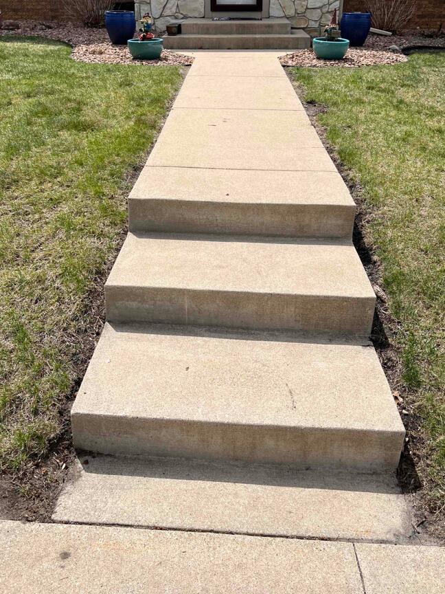 A homeowner in Rochester, MN, noticed that her front walkway was beginning to separate from her front stairs, creating a trip hazard. Not wanting the issue to get worse, she decided to research companies in the area that could restore the concrete. Once she found our website, she decided to take advantage of our FREE estimates, and a few weeks later our Design Specialist, Mitch S, headed out to the home.