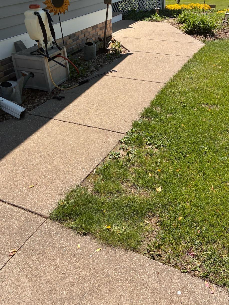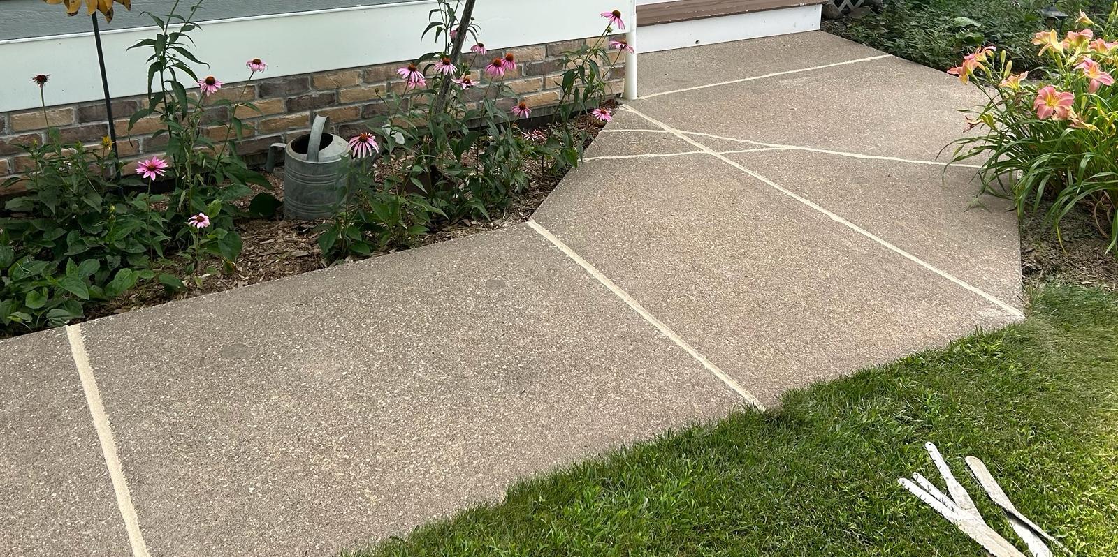 A homeowner in Elk Mound, WI was tired of dealing with the uneven and cracked concrete that was a part of her back walkway. Not only did it look unpleasant, but the large bump that had formed near the door had also become a small tripping hazard. She was determined to find a solution sooner than later to fix the problems. Going online to see what concrete repair services were in her area, she found the American Waterworks company website and found that while our office was in Minnesota, we offered our services in Wisconsin as well. She decided to sign up for a FREE no-obligation estimate with us to learn more. One of our Design Specialists later went to the home to inspect the walkway and answer any questions she had. He informed her that our PolyLevel and NexusPro products would work to level and seal the walkway and she happily agreed to the installations. Our Foreman, Patrick Burnes, and his crew then went to the home to carry out the installations. The homeowner was impressed with the restored walkway space and glad she had contacted us for help.