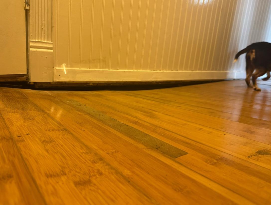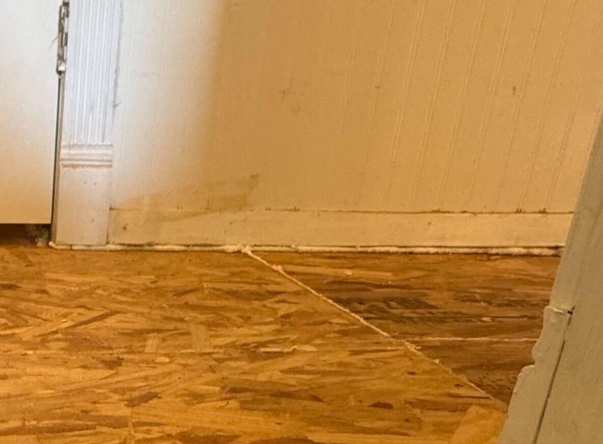 This homeowner had some serious sinking in their floors, this section was completely detached from the wall above it. After an inspection and written plan from one of our design specialists, Caleb, they agreed to let us send out one of our crews to solve this big problem. Led by our wood-working crew foreman, Jessie, we were able to take care of the compromised subflooring below, install all new wood, and raise it back up to perfect level. We're sure that dog enjoys the new, straight floor too!