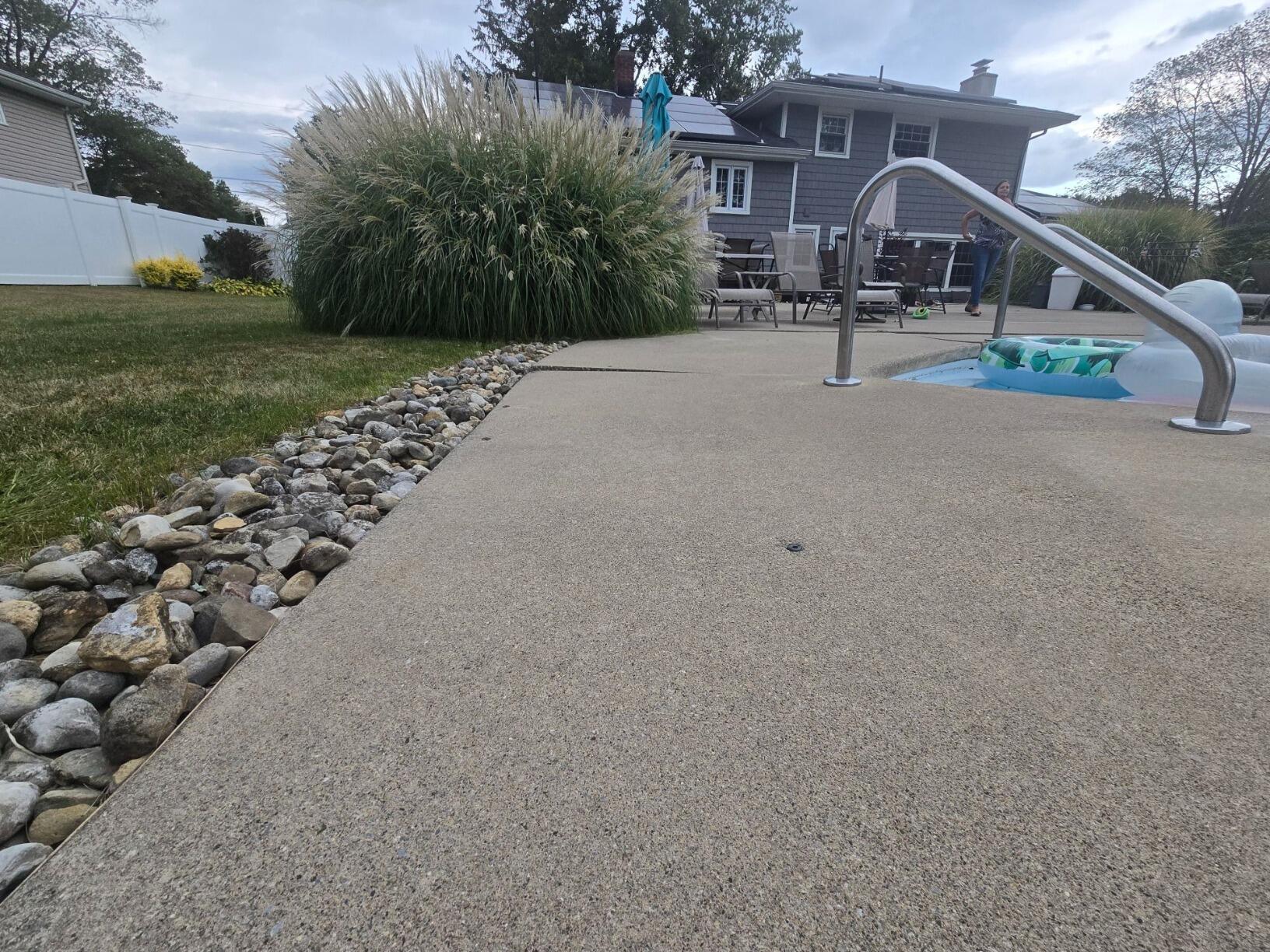 Years of moisture exposure had caused noticeable settlement around a Succasunna, NJ homeowner’s backyard pool deck, creating uneven surfaces and potential safety hazards. Concerned about both the functionality and appearance of their outdoor space, the homeowner reached out to the concrete specialists at Quality 1st.