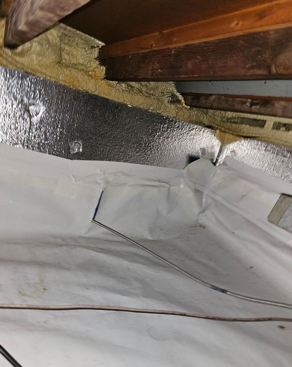 The CleanSpace liner now seals the crawl space from the earth, preventing water vapor and musty odors from rising into the home. Behind it, SilverGlo insulation panels help regulate temperature and improve energy efficiency by reflecting heat back into the space. Finally, the SaniDry Sedona dehumidifier maintains ideal humidity levels, protecting the home from mold, rot, and allergens.
