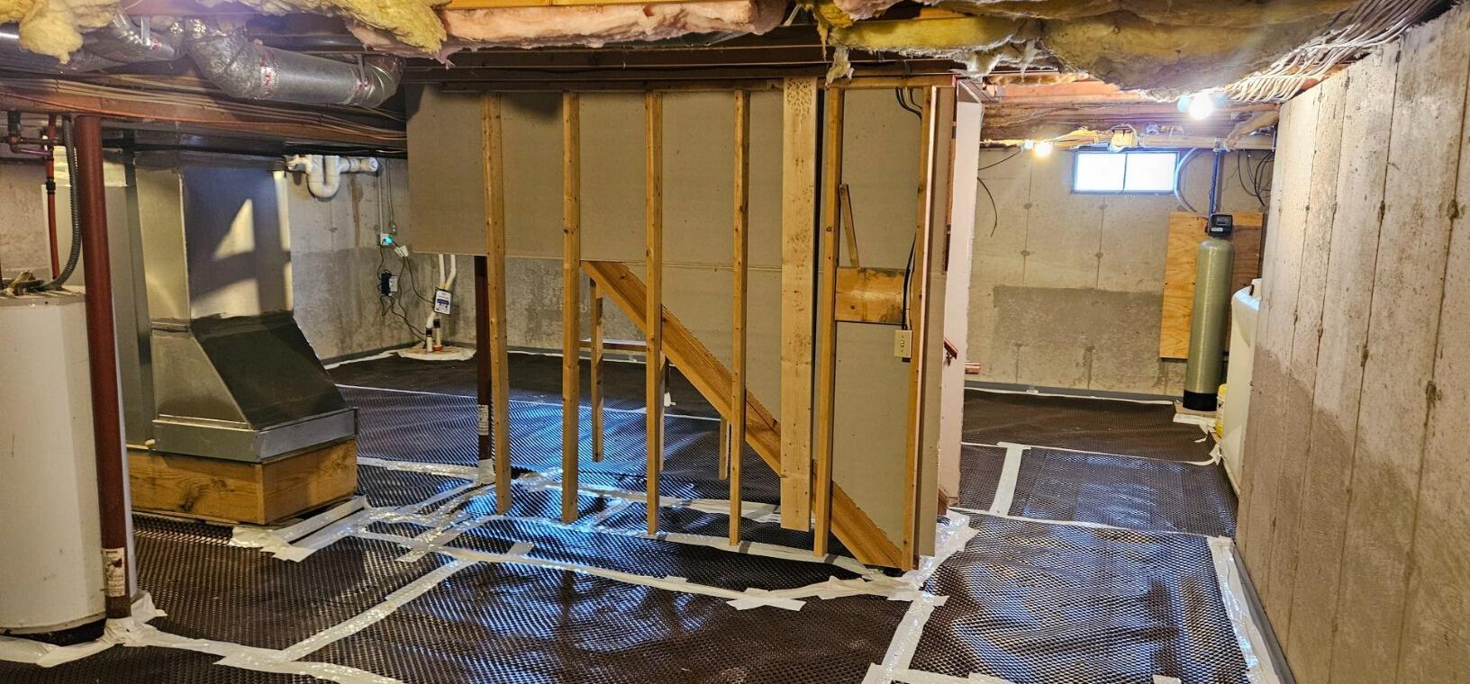 A homeowner called in with a crack in the foundation that was letting water into their basement. As a result, we installed a sump pump, drainage matting, Water Guard, and poured a new floor!