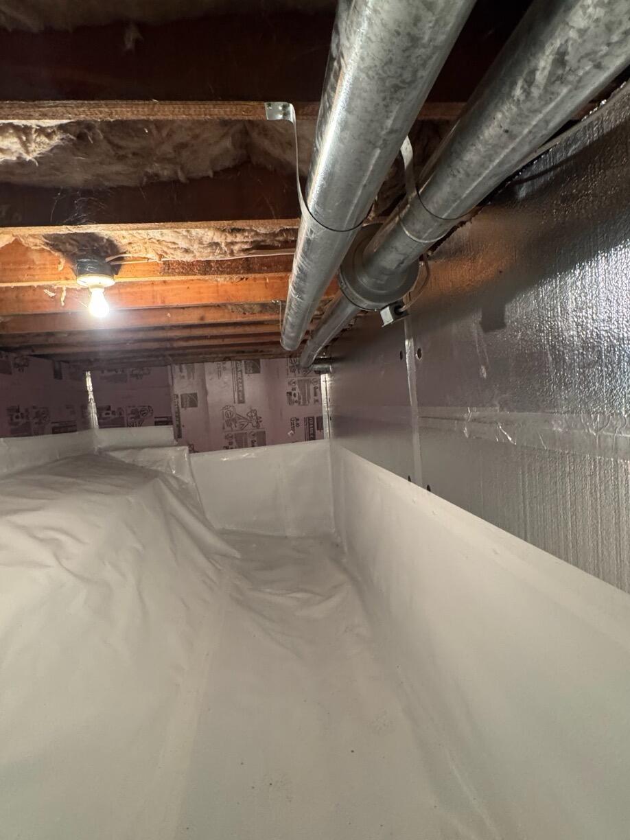 The room above Nancy's vented dirt crawlspace was cold. There was a damp smell coming from the crawlspace and there were always critters in there. Moisture would build up from humidity in the summer and it began to cause damage to wood flooring system. It was time was time to change from old crawlspace thinking to new crawlspace thinking. We covered all the vents, insulated the floor and walls then finally lined the entire space with the awesome Cleanspace liner. To top it all off we installed a Sanidry Sedona crawlspace air system to control the humidity and filter the air. The transformation is awesome and the difference in the air quality in the whole home was noticed immediately.