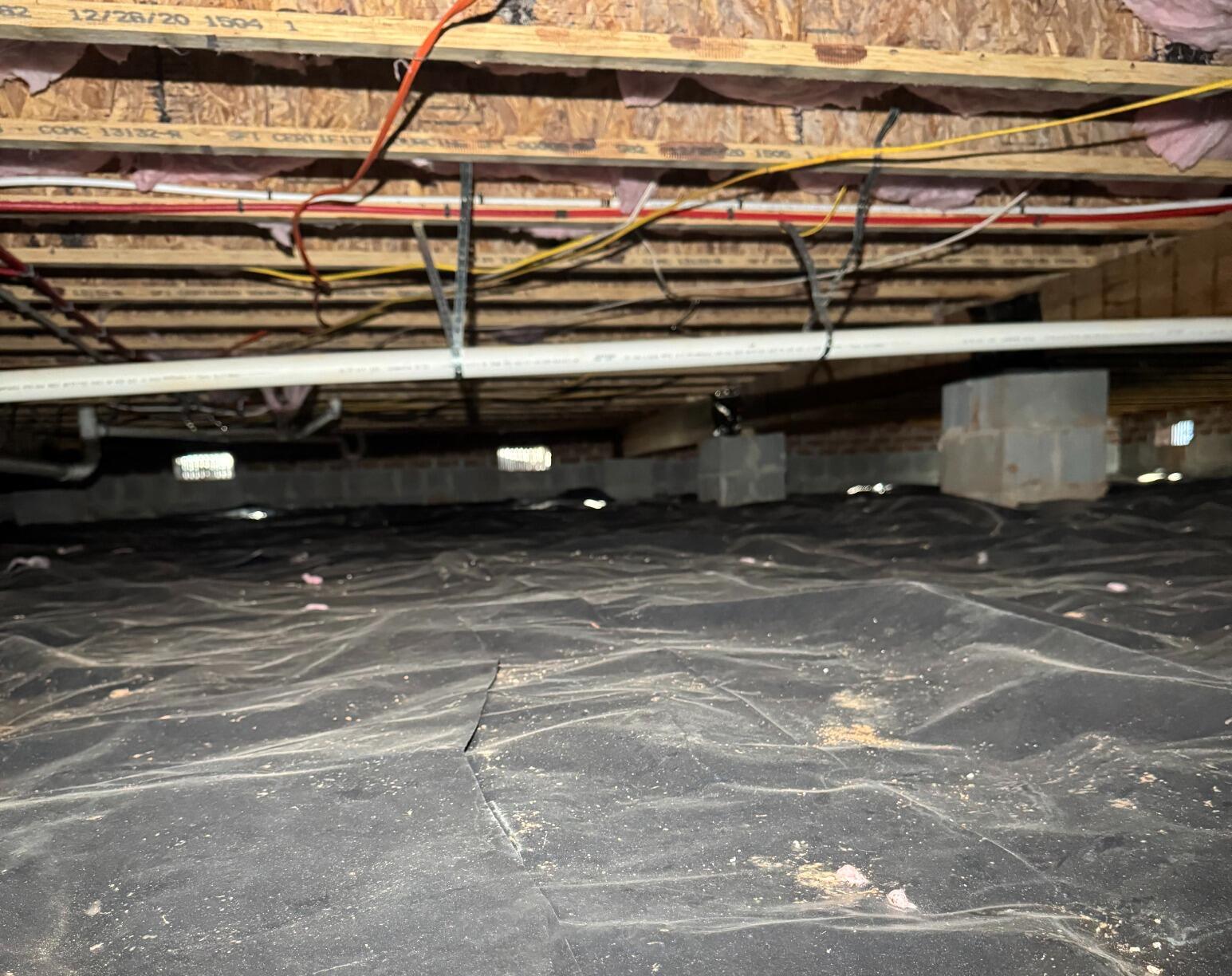 This formerly damp and exposed crawl space received a full CleanSpace and encapsulation to seal, cover and protect this area from any moisture or water damage.