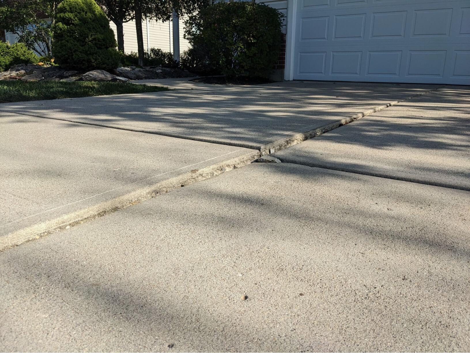 This driveway was shifting and causing the concrete slabs to crack and separate from one another. After we used PolyLevel foam and sealant to reconnect them, the driveway was back to looking good.