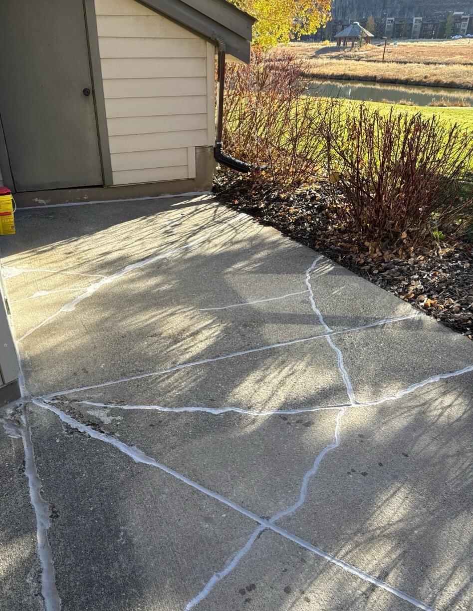 This concrete patio in Park City, Utah, had extensive cracking that created safety hazards and water infiltration concerns. Our team used professional crack repair techniques to seal and protect the surface, preventing further damage from freeze-thaw cycles and moisture penetration. The result is a clean, restored concrete surface that enhances both safety and appearance—perfectly suited for Utah’s changing mountain climate.