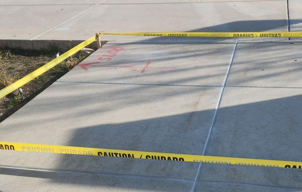 Before repairs began, affected concrete panels were carefully marked and the area was secured to ensure public safety during the process. The goal of the repair was to restore proper elevation, improve safety, and maintain ADA-friendly access without the need for full concrete replacement.