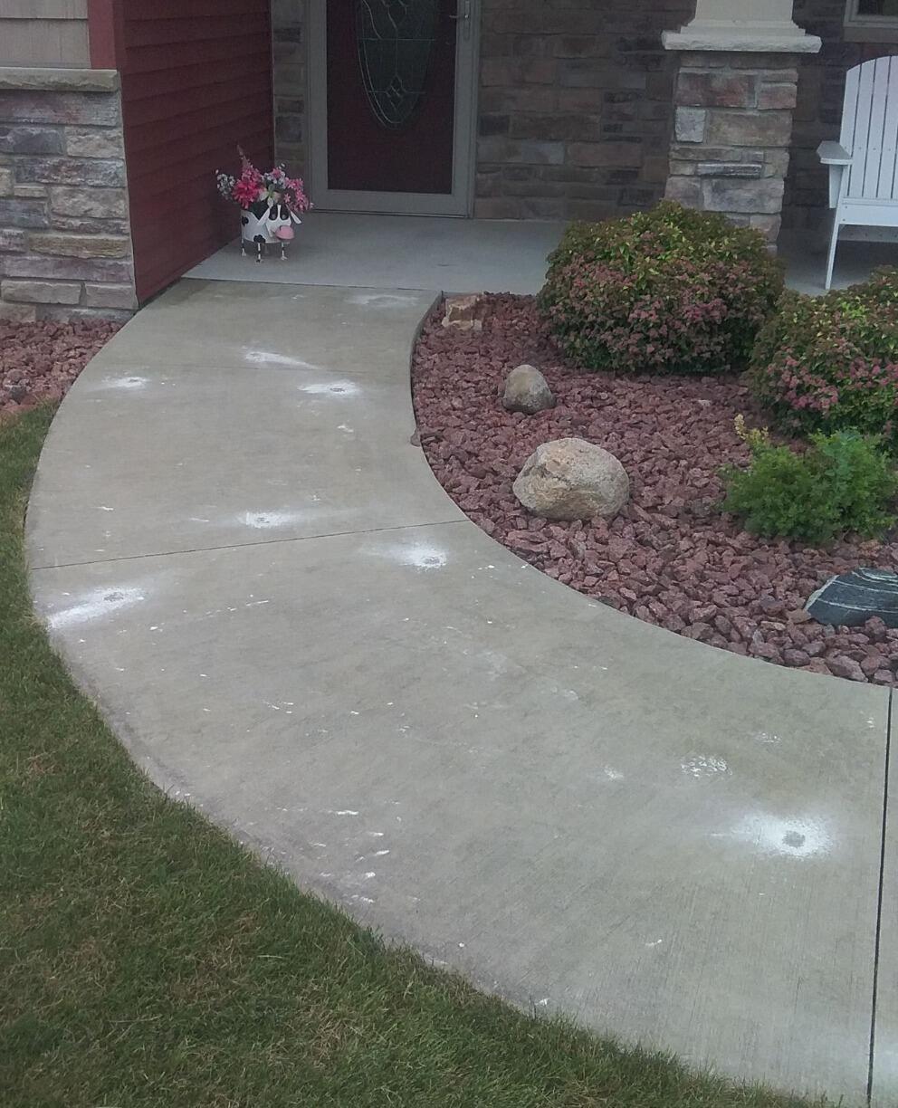 The stability of any concrete surface is dependent on the soils beneath it. The weight of concrete and what it supports, combined with natural soil erosion, can lead to sunken and uneven concrete surfaces, like this concrete walkway at a home in New Holstein, WI.