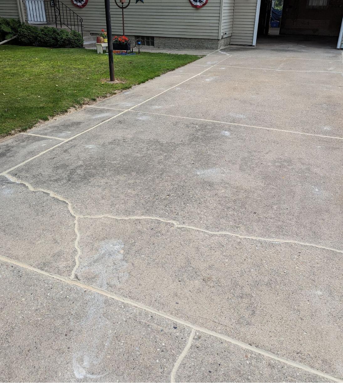The homeowner in Marinette, WI had a four-car concrete driveway showing visible settlement and cracking across multiple slabs. Over time, soil movement beneath the driveway caused sections to sink and become uneven, creating trip hazards and allowing water to pool and drain back toward the garage. The cracking and joint separation raised concerns about accelerated deterioration during Northeast Wisconsin’s freeze-thaw cycles.