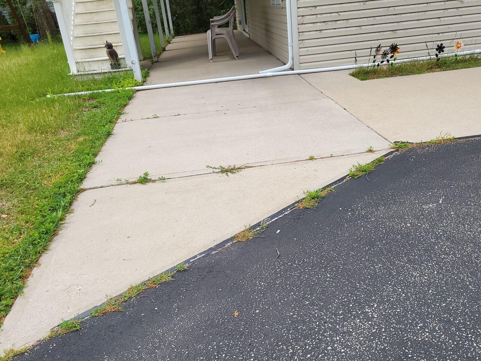 The homeowner in Marinette, WI noticed uneven concrete along the sidewalk leading to their deck and throughout a wrap-around walkway that passed directly in front of a large picture window. Over time, soil settlement caused sections of the sidewalk and walkway to sink, creating trip hazards and allowing water to collect and flow toward the foundation and window area. The movement also led to visible cracking and separation at the joints, raising concerns about long-term concrete damage and moisture intrusion near the home.