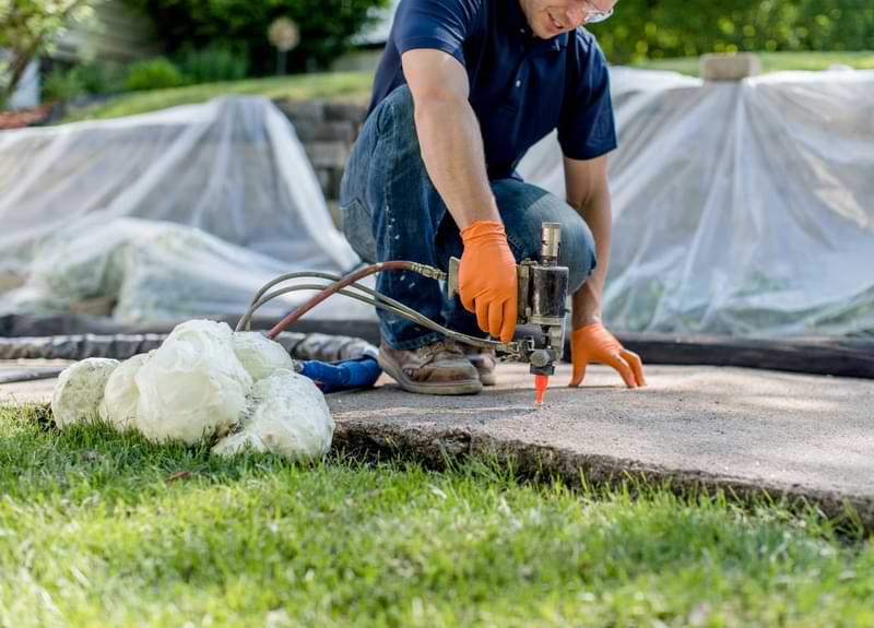 Expanding, high-density foam permanently raises sunken concrete in many applications.